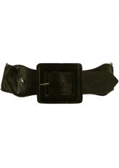 Aniye By large black leather belt with an inlay of mid black satin-like fabric that creates an eye catching ribbed effect pattern. The belt also features a large square shaped buckle made from leather.