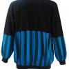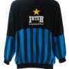 Black sweatshirt featuring a vibrant blue and black/green striped pattern with a gold star motif and ‘Inter Football Club’ logo.