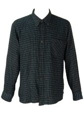 Straight cut flannel shirt in a textured cotton with a fine check pattern with tones of blue, black and white.