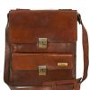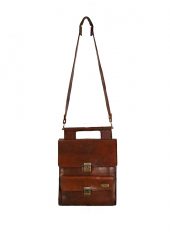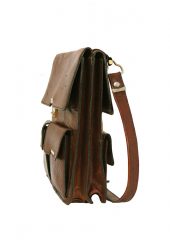 Leather Correspondents bag in a chestnut brown colour tone with two compartments and no shortage of further storage options! Both sides of the bag feature additional storage with a wallet-like pouch on one side and double pockets on the other with a zipped lining beneath the flap. The bag has a sturdy handle made from metal lined with leather as well as a full length shoulder strap. Lots of character and in great condition!