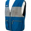 Colmar lightweight blue and grey gilet jacket with zipped pockets. Although there is no fabric label, the gilet is probably a man made waterproof fabric and the grey panels have a slight texture to them. The gilet fastens with a zip front which is slightly stiff but functions fine! There is also an inner drawstring at the hem so the garment shape and fit can be adapted.