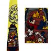 Disney themed tie in bright colourways of yellow, blue and red featuring cartoon favourites Mickey Mouse, Donald Duck, Goofy and Pluto on a Car Trip – Seemingly unconcerned by the car exhaust fumes!