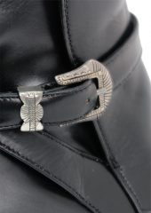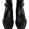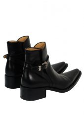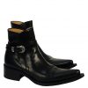 Black leather pointed toe ankle boots by high end brand Gianni Barbato in fantastic condition. The boots fasten with a wrap around strap that has a Western style decorative silver buckle.