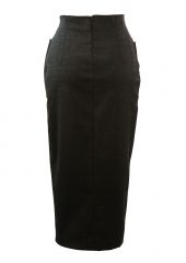 Charcoal grey, high waisted bodycon pencil skirt with front button detailing and side pockets. The skirt is fully lined and sits approximately at shin level. It also has some stretch to it to allow for a flattering bodycon shape. Please refer to our measurements for further sizing guidance.