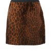 Leopard print mini skirt with a faux fur texture topped with a wide black waistband that has decorative ruched detailing at the edges. The waistband is elasticated so there is a little bit of flexibility with the width of the waistband. However please note that the base of the waistband is stitched to the skirt so it’s only the upper half that will have some give. We have provided a waist measurement with the waistband non stretched.