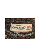 Missoni Sport polo neck jumper featuring a striped pattern in lovely autumnal colourways of russet, blue, black and grey. We have sized the jumper as a size M for a relatively loose fit and as an L for a slightly more fitted cut without compromising on the intended casual shape. Please refer for our more specific measurements for further sizing guidance.