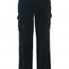 Navy blue corduroy cargo trousers with asymmetric seam pockets beneath the waistband and side flap fronted pockets at the upper leg. The trousers also have back buttoning seam pockets. In great condition.
