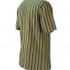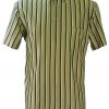 Mod style Italian polo shirt in an olive green colour tone with distinct navy blue, brown and white vertical stripes. The shirt is in pristine condition and looks like it could be dead stock ie: a vintage item that has never been worn.