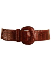 Crocodile belt and buckle in a sumptuous rich tan colour. There is some very minor wear in two parts of the outer edge of the belt which is barely noticeable – however we have reduced the price from £40 – £35 to reflect this. The belt is otherwise in wonderful condition.
