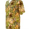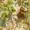 Short sleeved shirt featuring a striking montage of safari animals ranging from Lions, Zebras, Elephants, Rhinos, Tigers and Giraffes – and possibly more! The shirt has a lovely colourway of rich green, brown, taupe and black with white highlights.