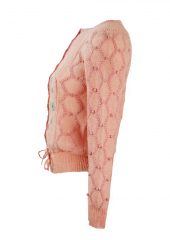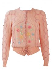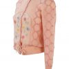 Pretty in pink cardigan featuring embroidered flowers in pastel colourways of yellow, green, blue & pink. Additional design touches include a lovely textured knit pattern on the sleeves & sides with metallic pink highlights as well as a drawstring option at the waistband.