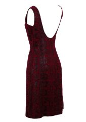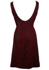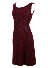 Vintage 1950’s pink and black party dress with an intricate brocade pattern and eye catching glittery metallic highlights. The dress has a wide scoop neckline with lower scoop detailing at the back for a sophisticated feminine look. In true 50’s style, the dress sits just below the knee. There is a side zip fastening and the skirt is lined for added comfort and ease of wear.
