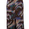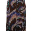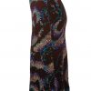 Vintage 1970’s brown A line skirt with a striking abstract floral print in classic 70’s colourways of purple, lilac, beige and turquoise. The skirt is midi length and fully lined. Please note that there is a very small hole at the front and we have priced the skirt to reflect this.