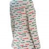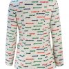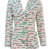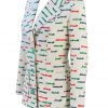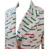 Vintage 1970’s warm white blazer jacket with French days of the week wording splashed across the garment in bright primary colours of blue, red and green. The jacket has 3 large green feature buttons and two front pockets and has a relatively fitted cut to it.